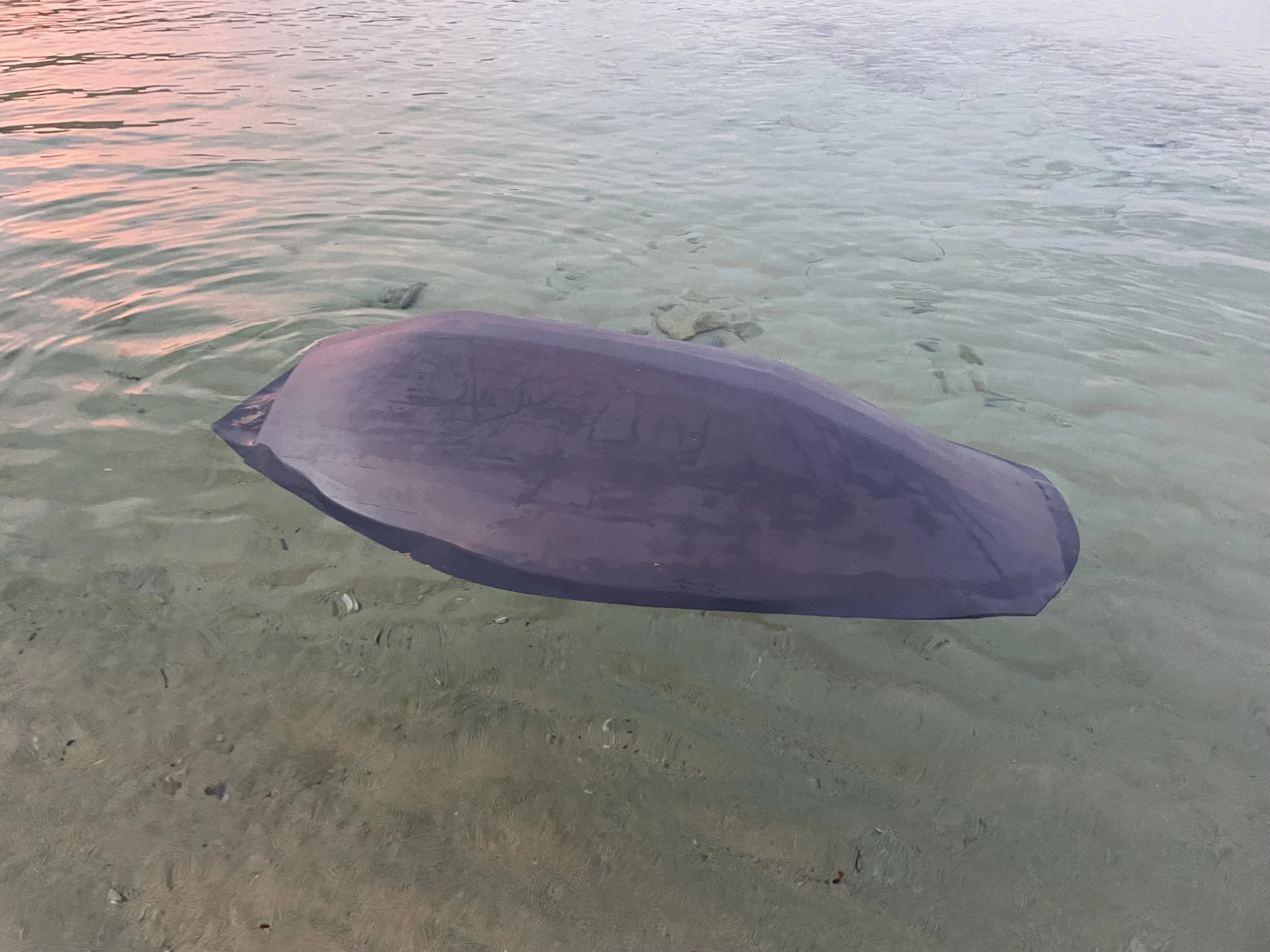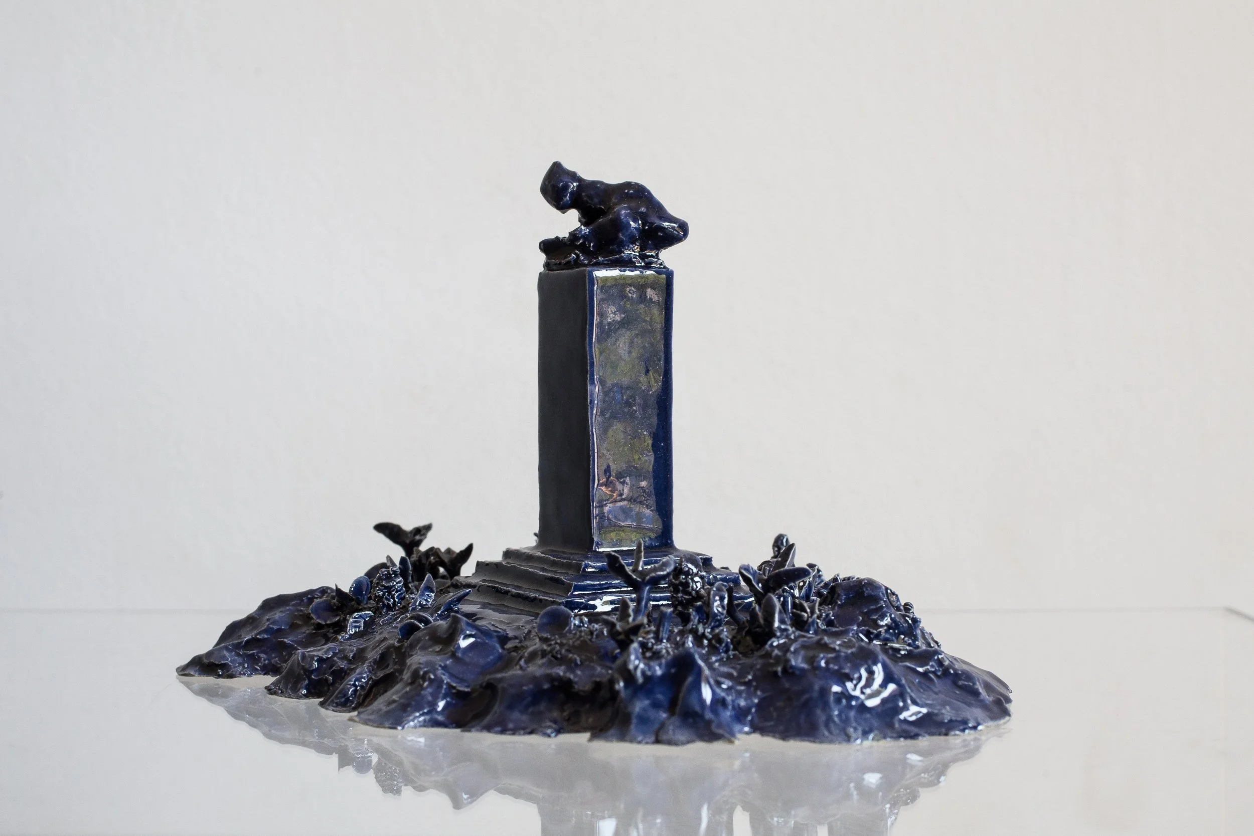 floating sculpture, wood and glazed porcelain 110x70x50cm, 2025
